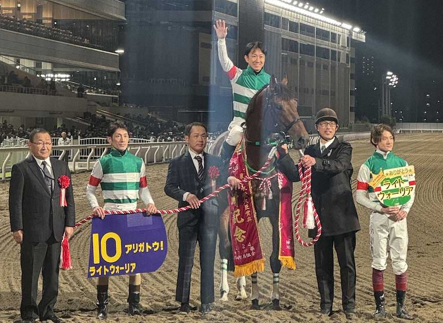 24年NARグランプリ年度代表馬に選出されたライトウォーリア(牡8=内田、父マジェスティックウォリアー)の引退式が17日、川崎競馬場で8R終了後に行われた。