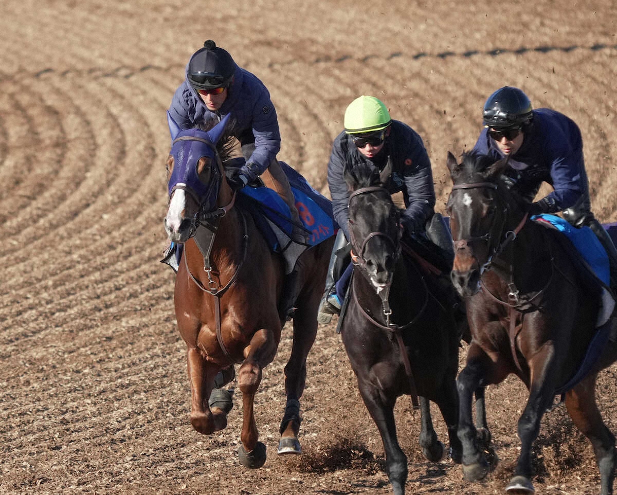 Wコースを3頭併せで追い切るミッキーファイト(左)