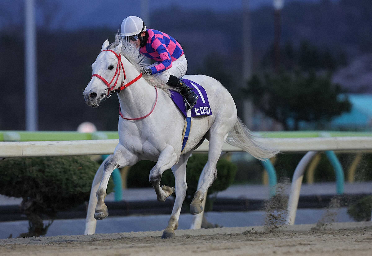 鞍上の高松亮騎手(39)は「今回は逃げて迎え撃つ形で臨みました。スタートから意識的に流しましたが、外からプレッシャーをかけられて楽な展開ではありませんでした。向正面から自分で動いていくのが勝ちパターン。あとは馬を信じて追い続けました。苦しいレースでしたが、それをはねのけて勝ち切れるのがヒロシクンの強さ。桐花賞で負けた相手たちでしたからね。強い気持ちで臨みましたが、しっかり応えてくれました」と振り返った。