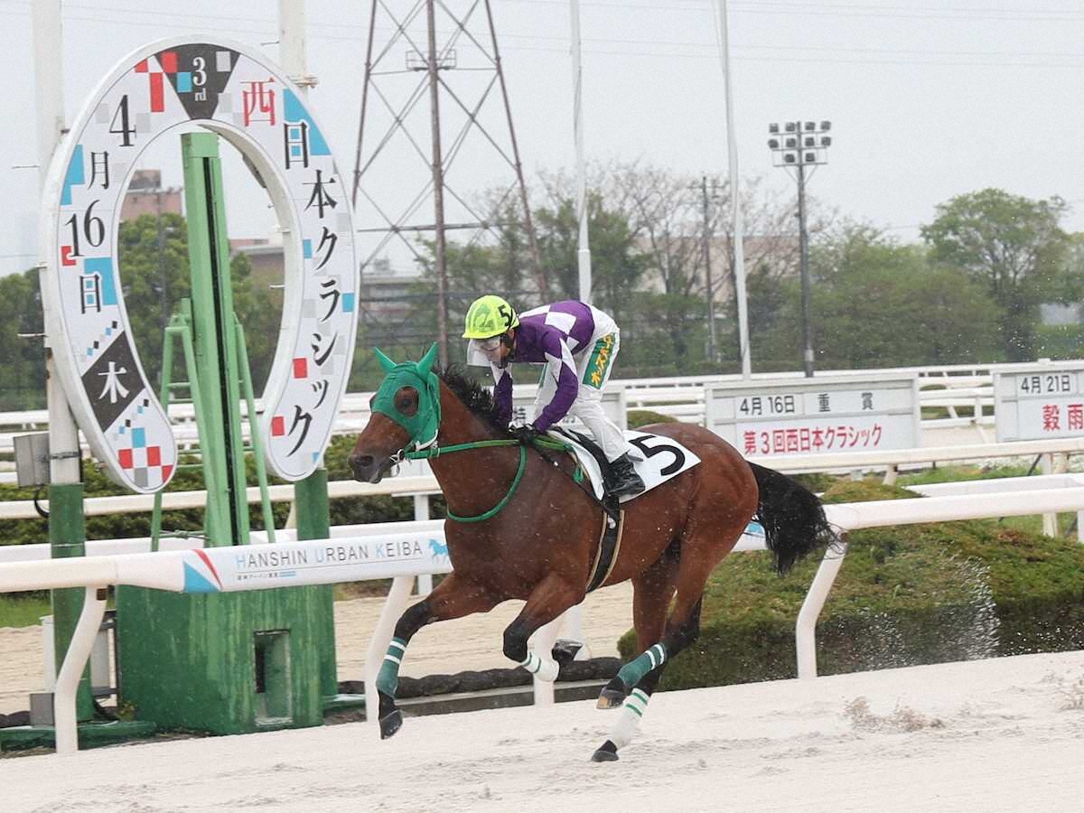 JRA在籍時は福永祐一厩舎に所属(未出走)。調教でも好時計を出していた(有)シルクレーシング所有の素質馬だ。前走、前々走でも強い勝ちっぷりだったが、3戦目では一段と強さを発揮。この日、自己最多タイとなる1日6勝を挙げた名手・下原理(48)の手綱に導かれ、全力を出し切るまでもなく先頭で駆け抜けた。